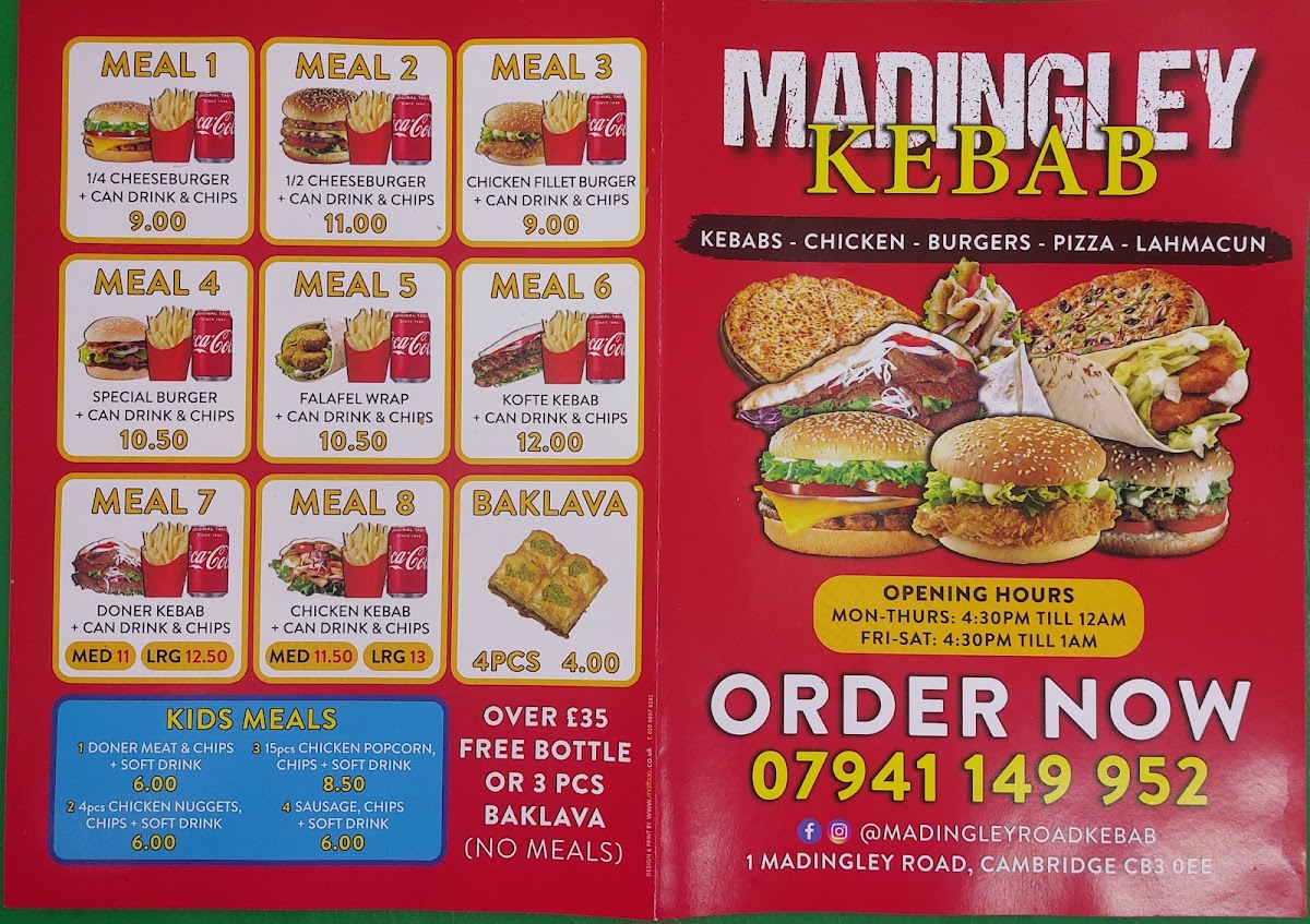 Welcome to Madingley Road Kebab, a beloved takeout spot nestled in the heart of Cambridge. Their menu boasts a delightful array of offerings, tailored to satisfy both vegetarians and meat lovers alike. For vegetarians, the Halloumi Burger (£5.50) and Falafel (£6.50) shine, bringing flavor and freshness to your meal. Meat enthusiasts will revel in the well-marinated kebabs that have garnered rave reviews for their juicy texture and generous portions.